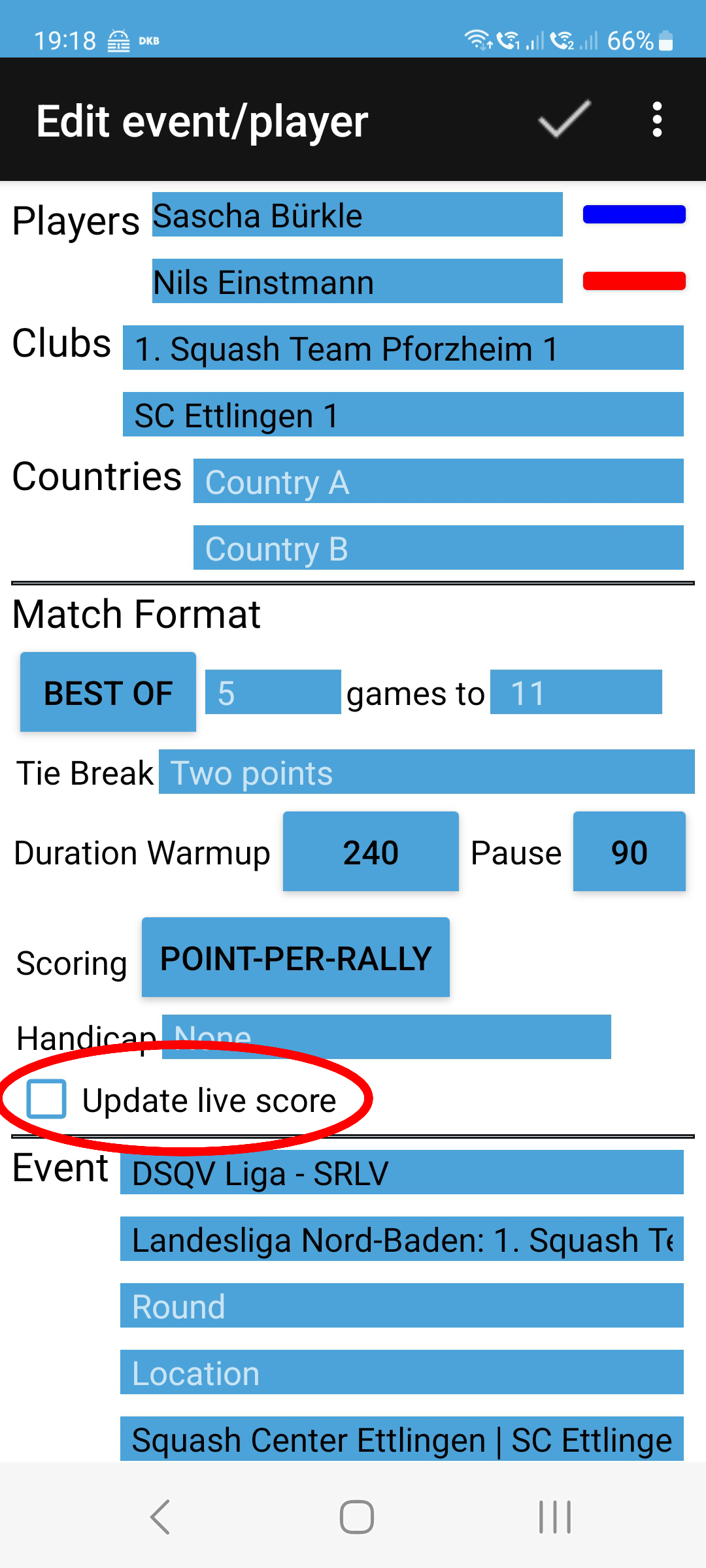 dass in der App des Schiedsrichters die Option Update Live Score deaktiviert wurde. Zum Darstellen