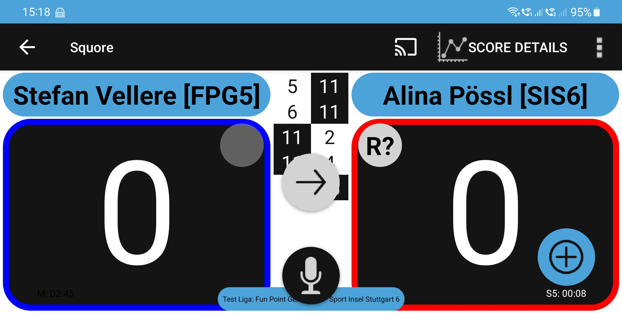 Gleichzeitiges Tippen auf den Punktestand von Spieler A und Spieler B.